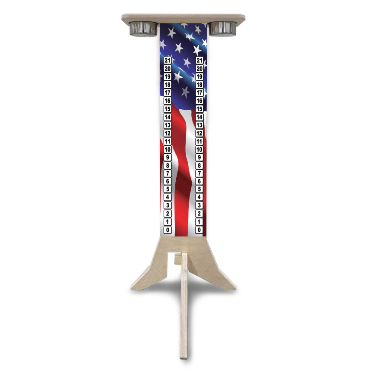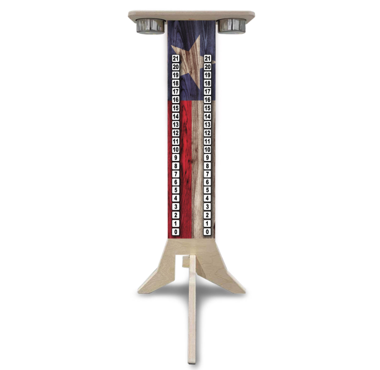 Our scoring towers are designed using 3/4” Baltic Birch wood with direct print right on the wood. They come apart easily for transporting and reassemble in seconds.